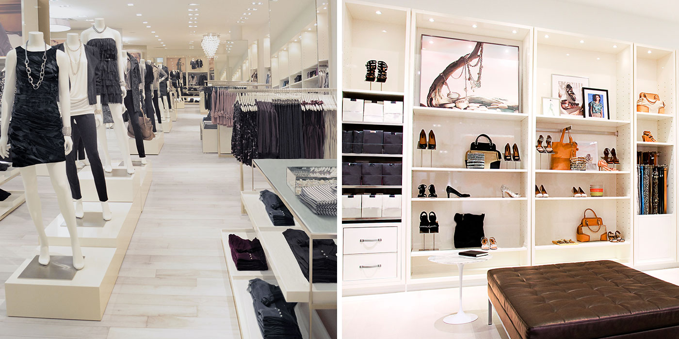 Groves & Co. designed a space that blends innovation with warmth. A central runway of mannequins draws customers inward, naturally guiding them through distinct merchandise bays framed in creamy-white lacquer and pearlescent glass. Accessories and intimate apparel are presented in a chic, boudoir-inspired space, creating moments of intimacy and luxury. By integrating thoughtful zoning, elegant materials, and residential-inspired details, the design delivers a modern shopping experience that is both elevated and effortlessly inviting.