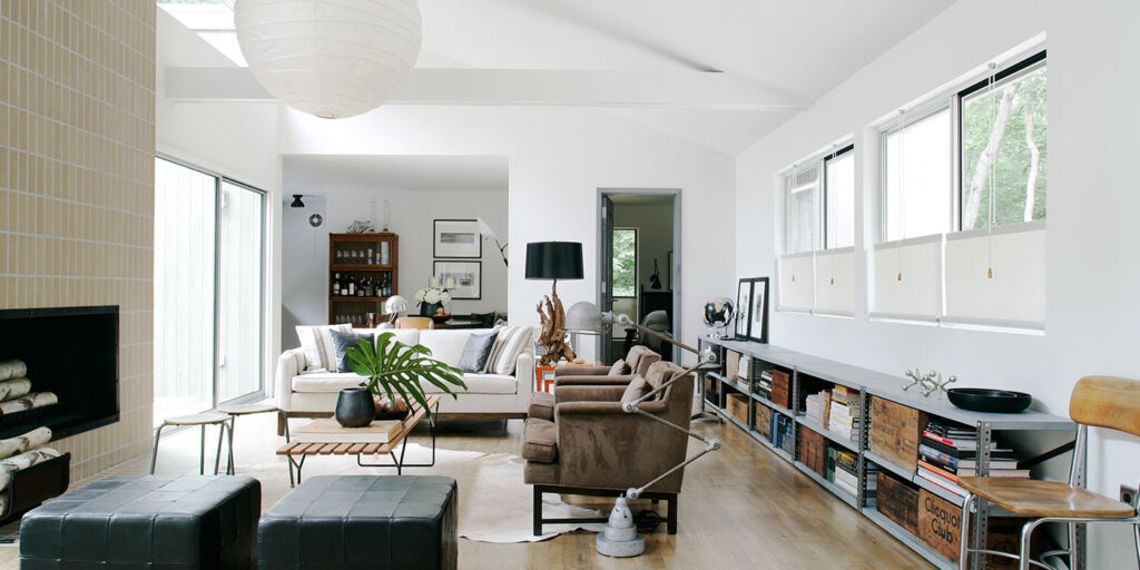 Set on a tranquil, wooded lot, this modernist bungalow was designed as a weekend sanctuary for a Manhattan-based couple. The renovation seamlessly connects indoor and outdoor living, offering a comfortable retreat that is as inviting in the heat of summer as it is in the cool winter months.