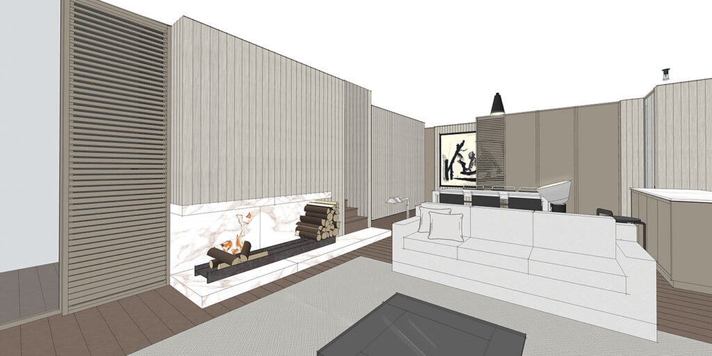 The renovation included a master suite addition, reconfigured façade, new decking, and beautifully landscaped grounds, all carefully integrated with the home’s original tower form. Natural woods and weather-resistant materials were selected to age gracefully, developing a rich patina over time. Inside, a balance of warm textures and crisp white accents creates a space that is both elegant and easy to maintain. The eclectic interior furnishings blend early modernist pieces with iconic 1970s high-tech elements, subtly nodding to Angelo Donghia’s legacy while providing Derek Lam and Jan-Hendrik Schlottmann with a serene, stylish retreat.