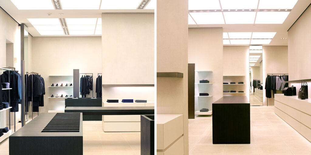 The goal was to design a retail concept that embodied Giorgio Armani’s brand identity while providing a flexible, functional environment for showcasing apparel and accessories.