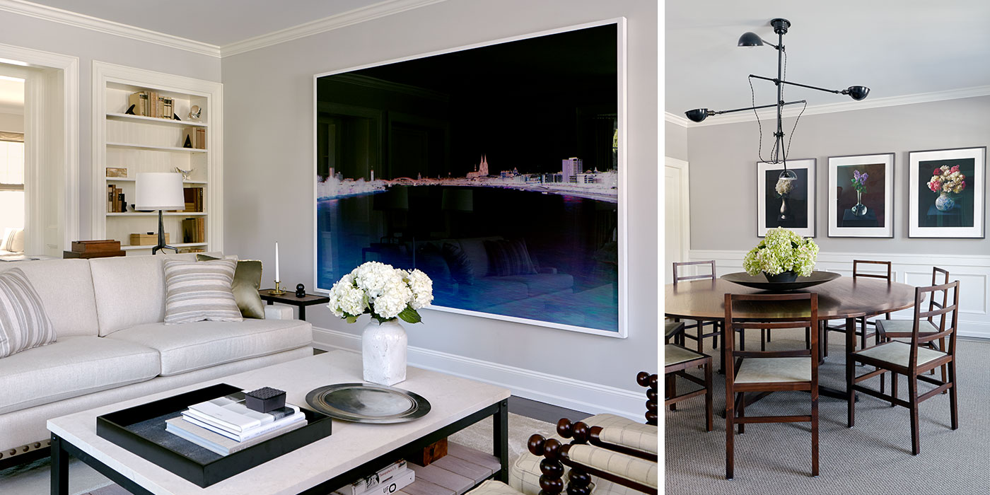 The homeowners wanted to honor the timeless character of their Colonial-style residence while incorporating their passion for industrial artifacts, folk art, and contemporary pieces.