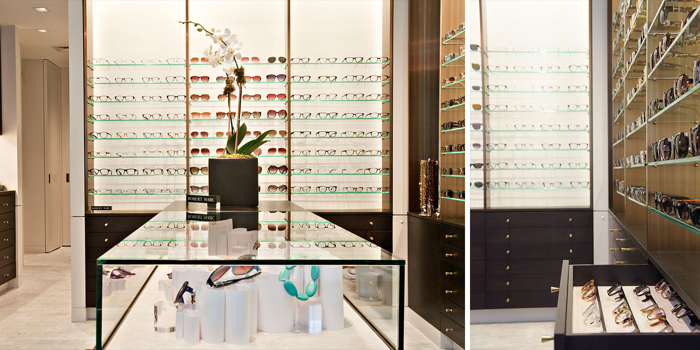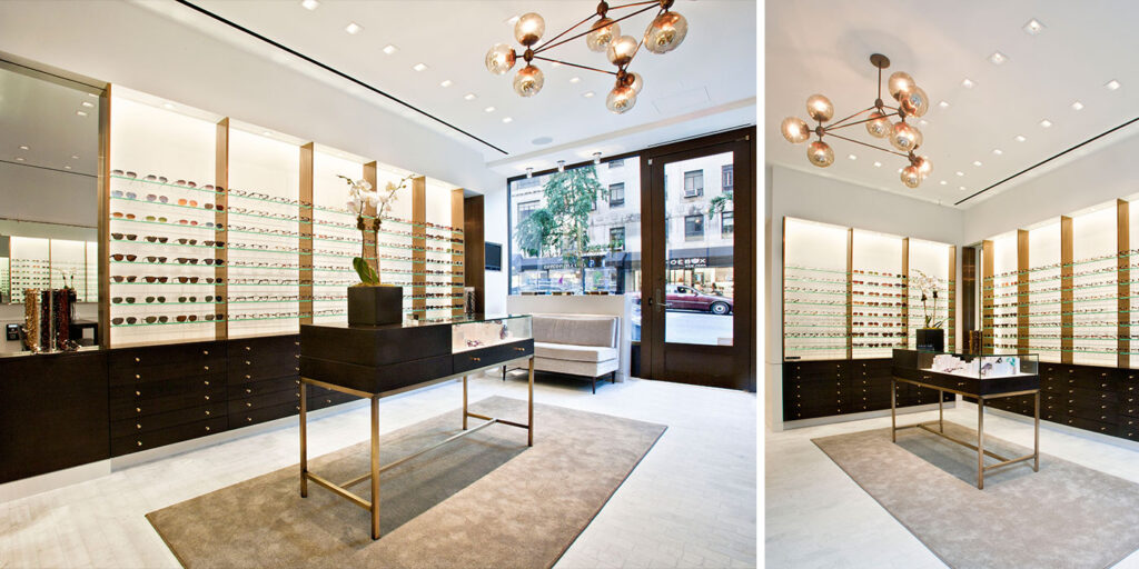 The space needed to feel luxurious yet approachable, functionally efficient yet warm, and visually striking while ensuring the eyewear collection remained the unmistakable focal point. Balancing residential charm with a modern retail sensibility was essential to achieving this vision.